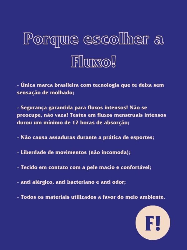 O tempo de duração varia muito de cada fluxo menstrual, sendo importante observar nos primeiros usos. Nos testes feitos em mulheres com fluxo intenso, as calcinhas Fluxo! duraram em torno de 8 a 12 horas e em mulheres com fluxo leve e moderado, de 14 a 18 horas.